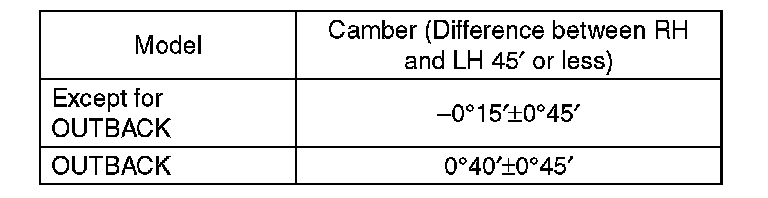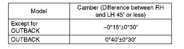 1) When adjusting the camber, adjust it to the following value.