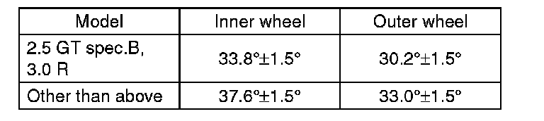 1) Check that the left and right wheel steering angles are within specification.
