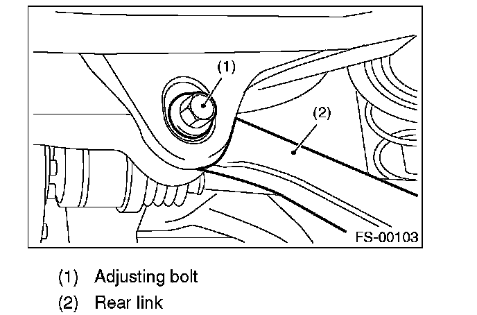 1) Make thrust angle adjustments by turning the toe-in adjusting bolts of the rear suspension equally in the same direction.