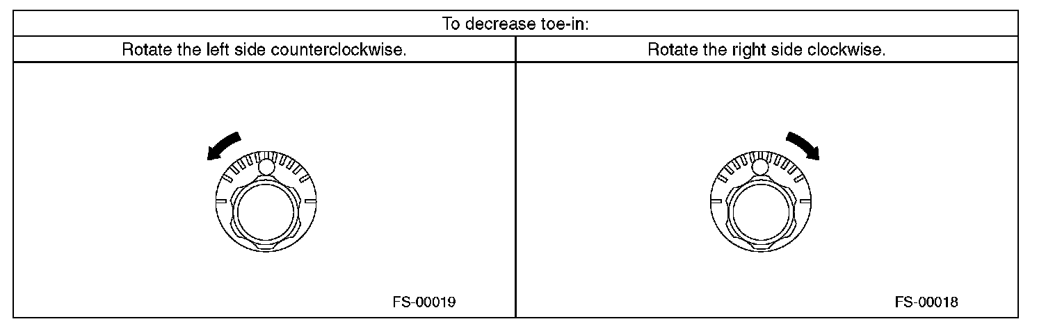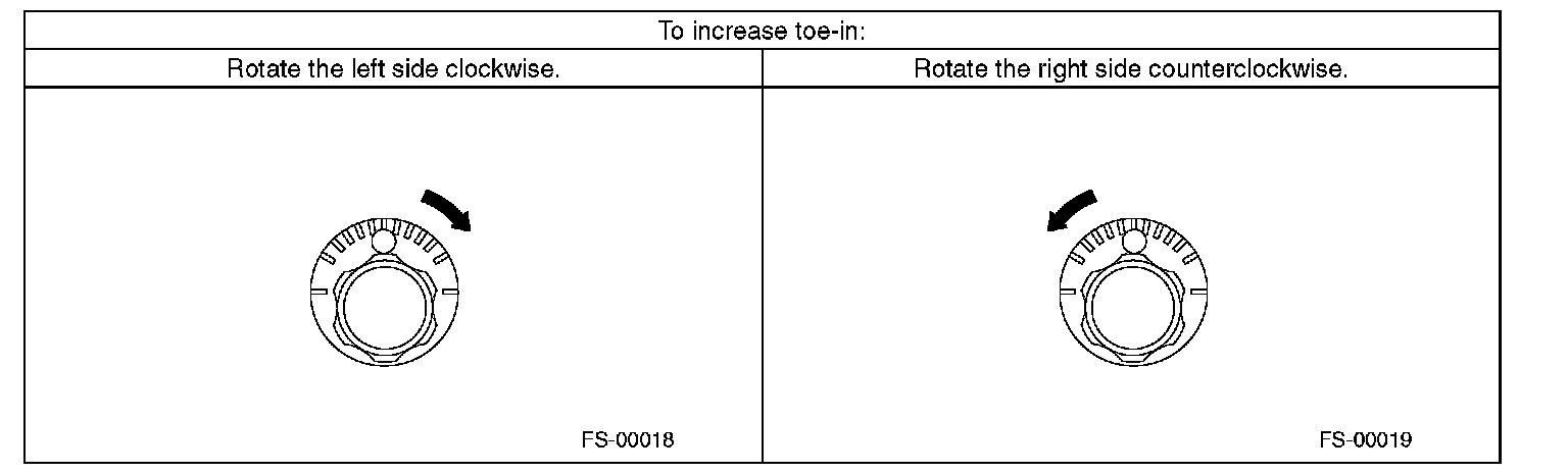 2) When one rear wheel is adjusted in a toe-in direction, adjust the other rear wheel equally in toe-out direction, in order to make the thrust angle adjustment.