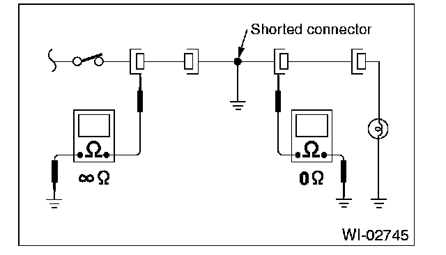 Disconnect all affected connectors, and check continuity between each connector and ground. When the ohmmeter indicates continuity between a particular connector and a ground, that connector is shorted.