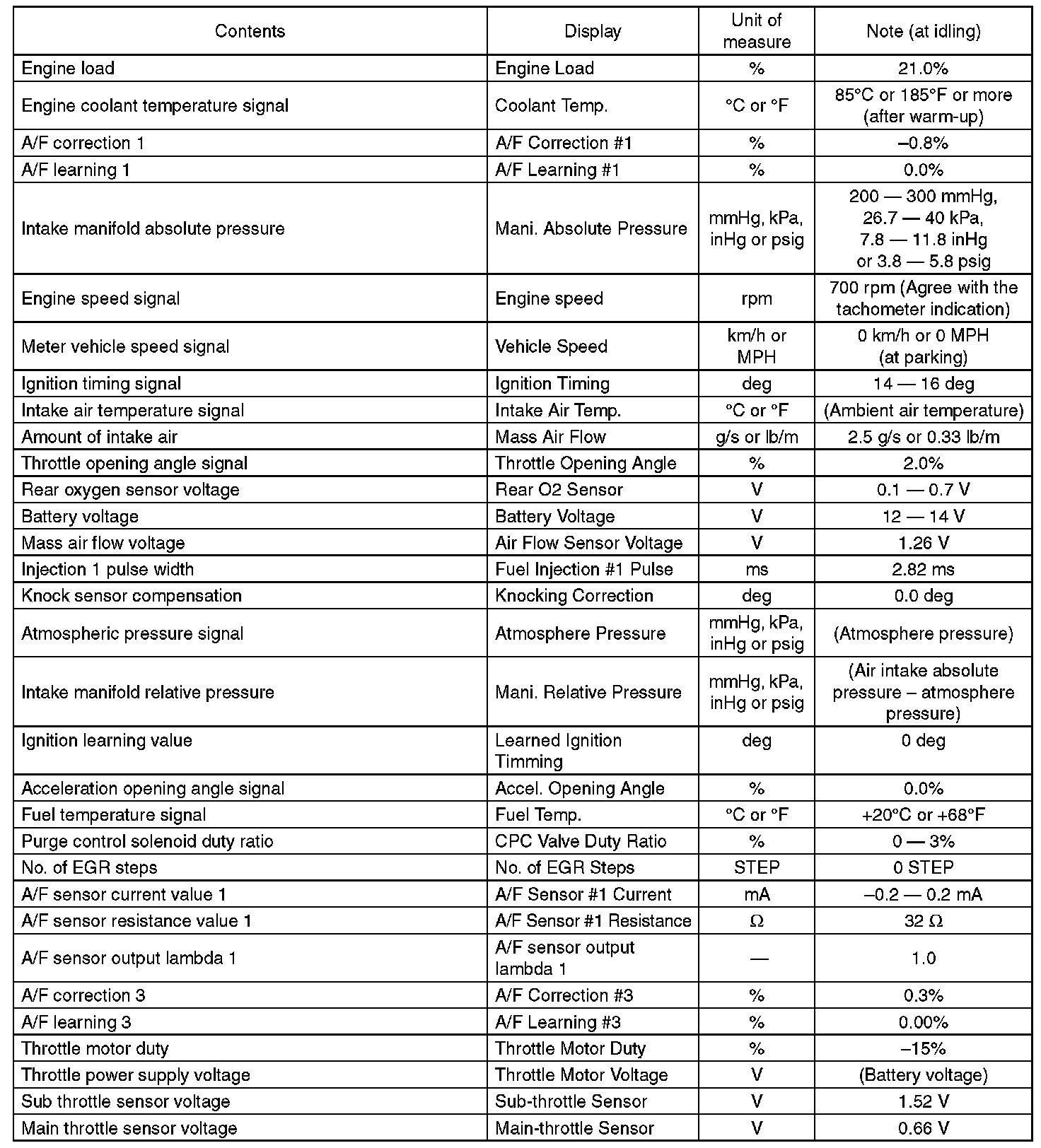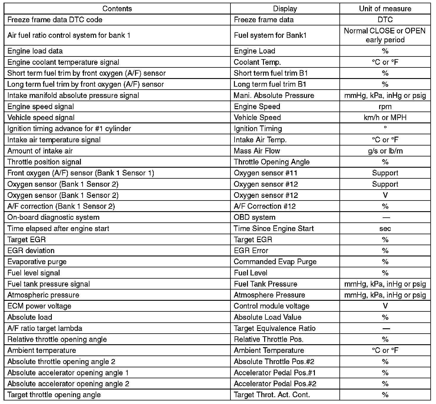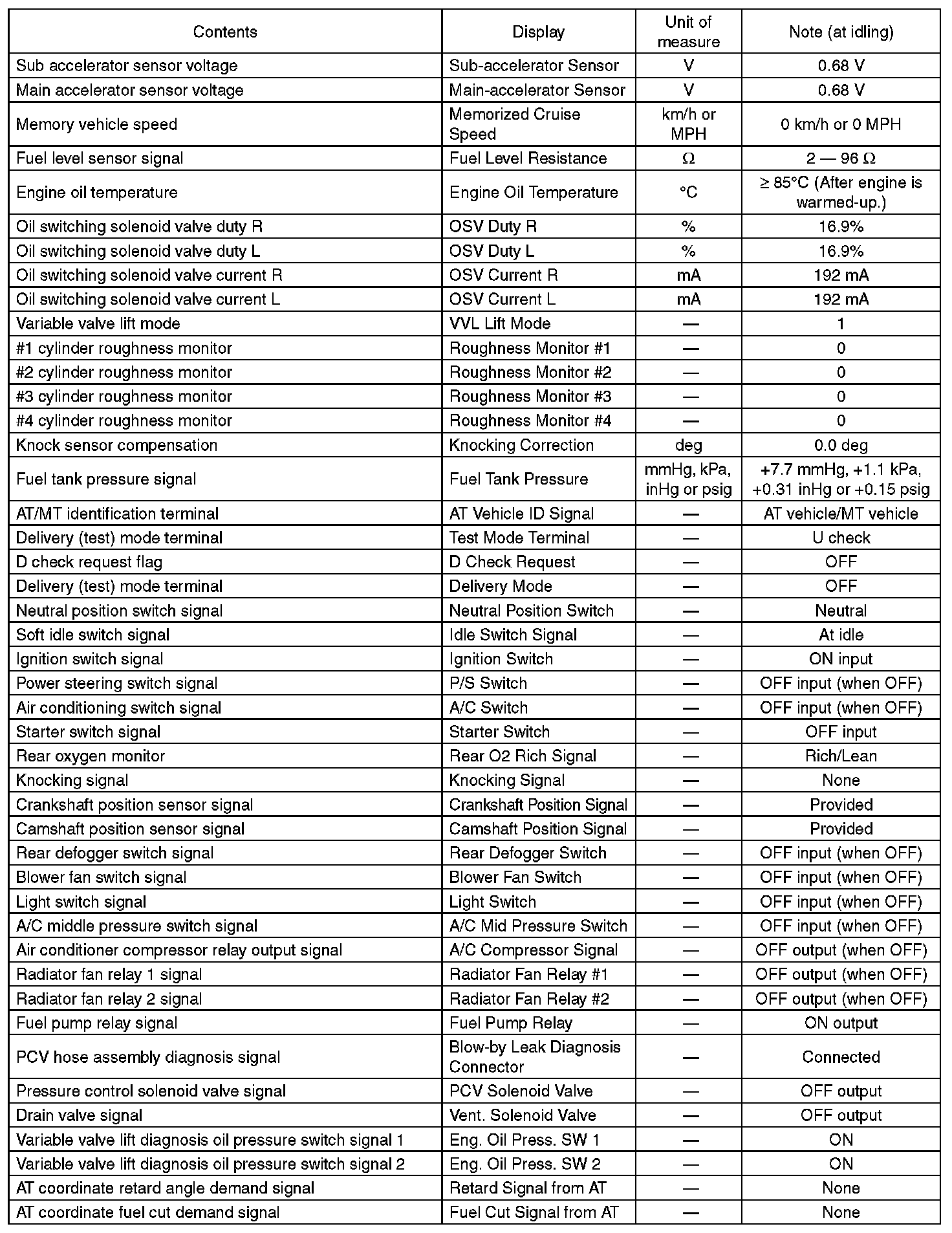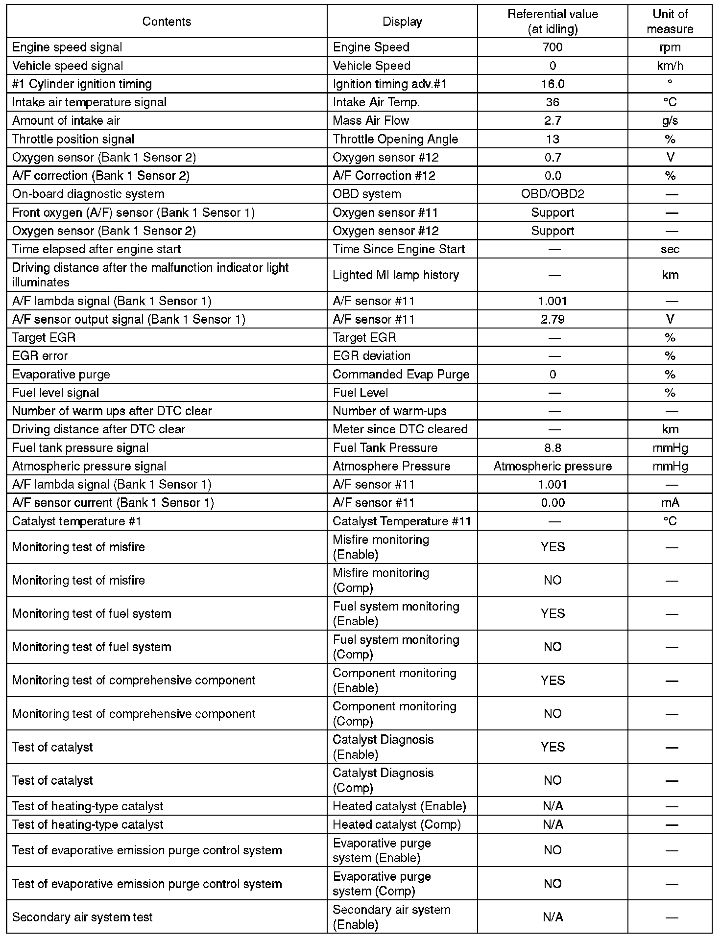 5. READ CURRENT DATA FOR ENGINE (OBD MODE)