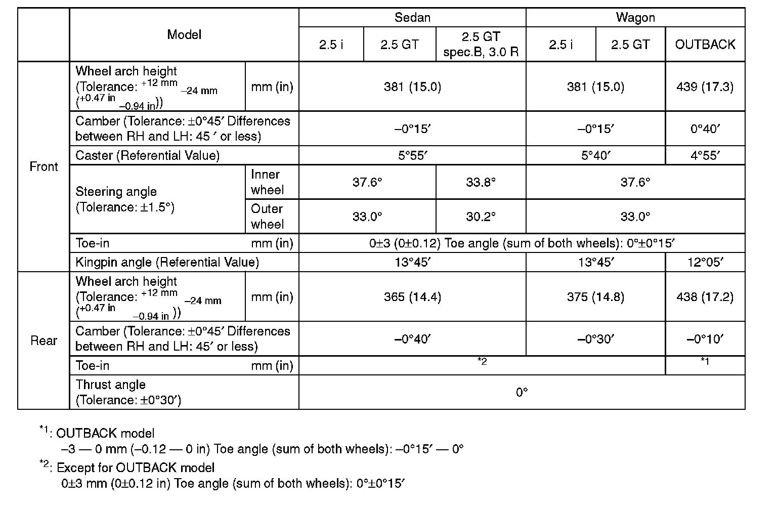 ^ Other items indicated in the specifications table cannot be adjusted. If other items exceed specifications, check the suspension parts and connections for deformation, and replace with new parts as required.