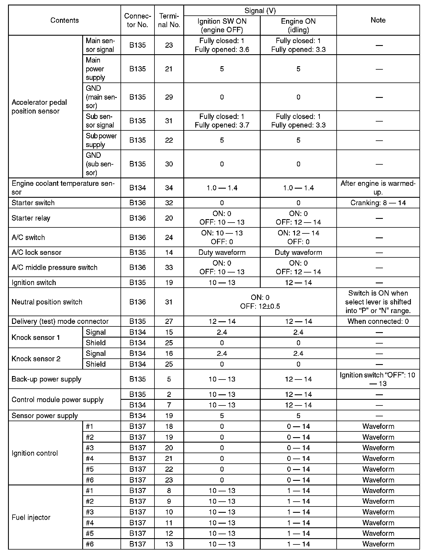 Engine Control Module (ECM) I/O Signal (Part 4):