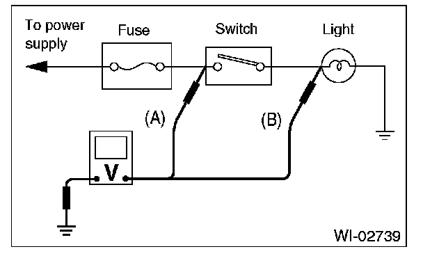 Disconnect all connectors affected, and check continuity in the wiring between adjacent connectors. When the ohmmeter indicates infinite , the wiring is open.