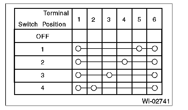 3. The symbol "0--0" indicates that continuity exists between two points or terminals. For example, when a switch position is at 3 , continuity exists among terminals 1, 3 and 6, as shown in the table below.