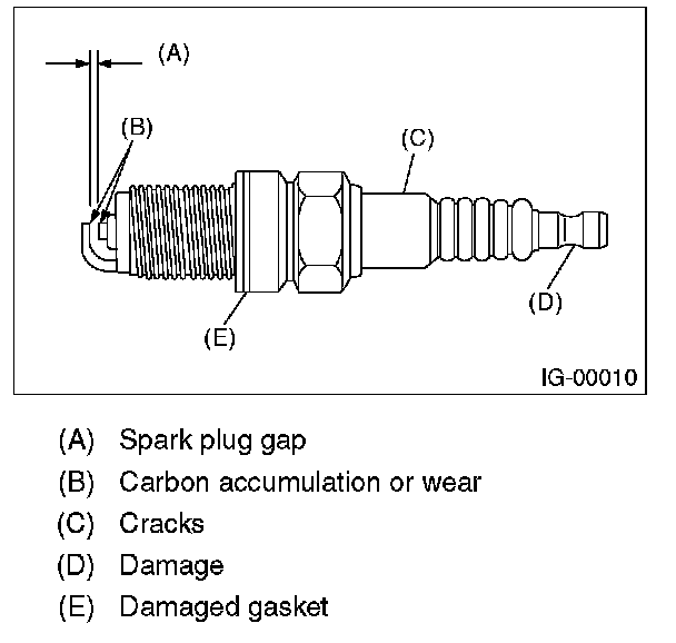 Check the electrodes and inner and outer ceramic insulator of plugs, noting the type of deposits and the degree of electrode erosion.