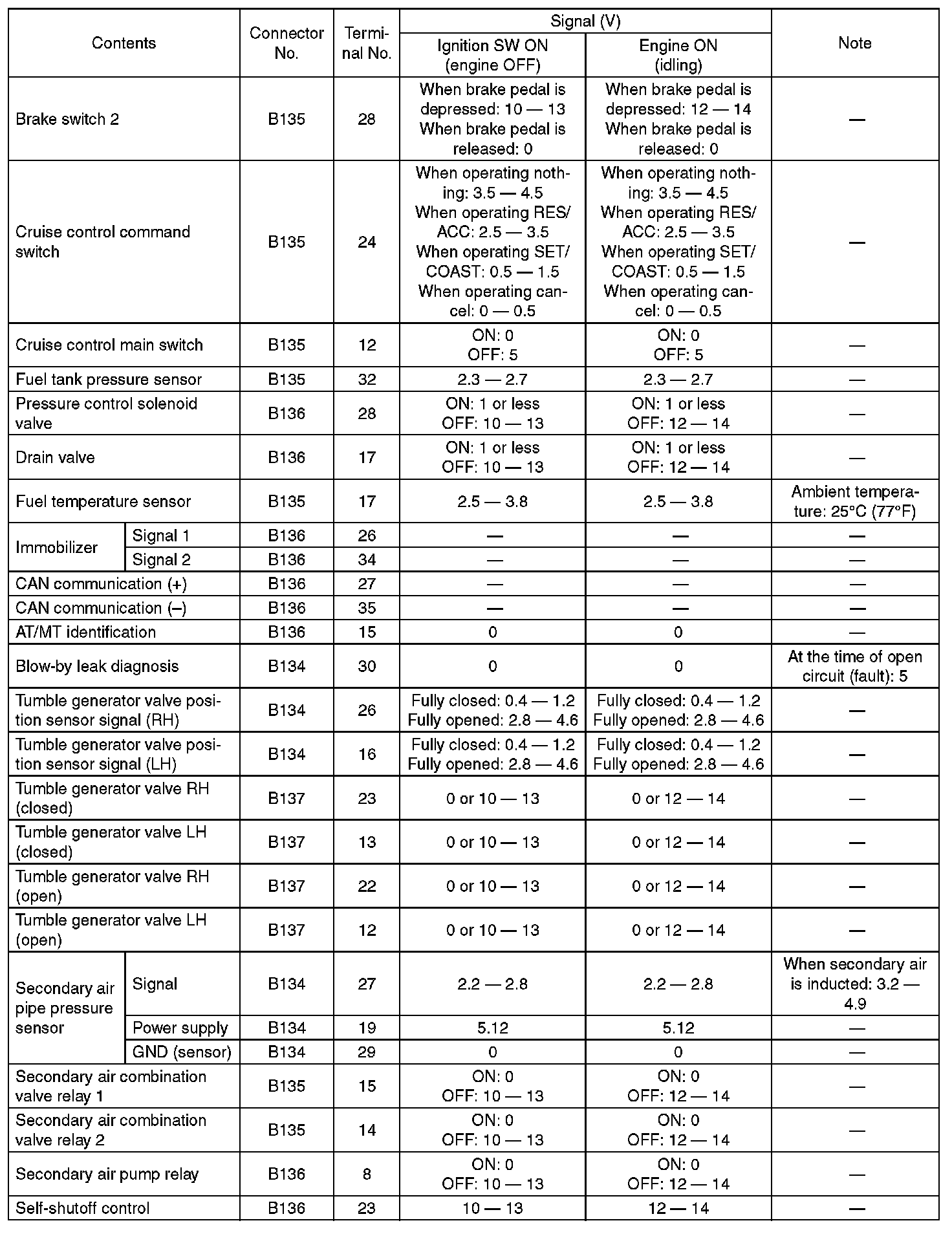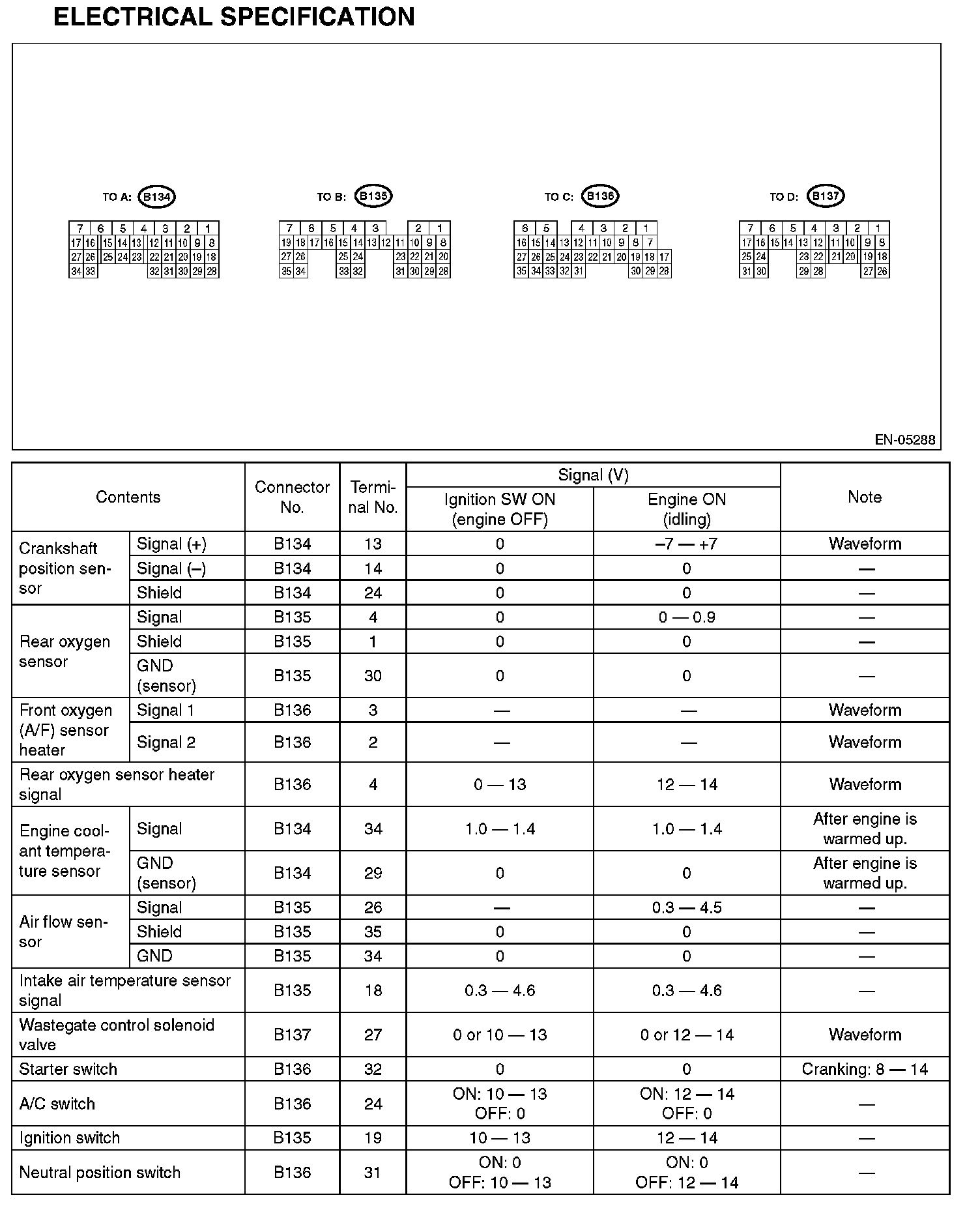 Engine Control Module (ECM) I/O Signal - Electrical Specification (Part 5):
