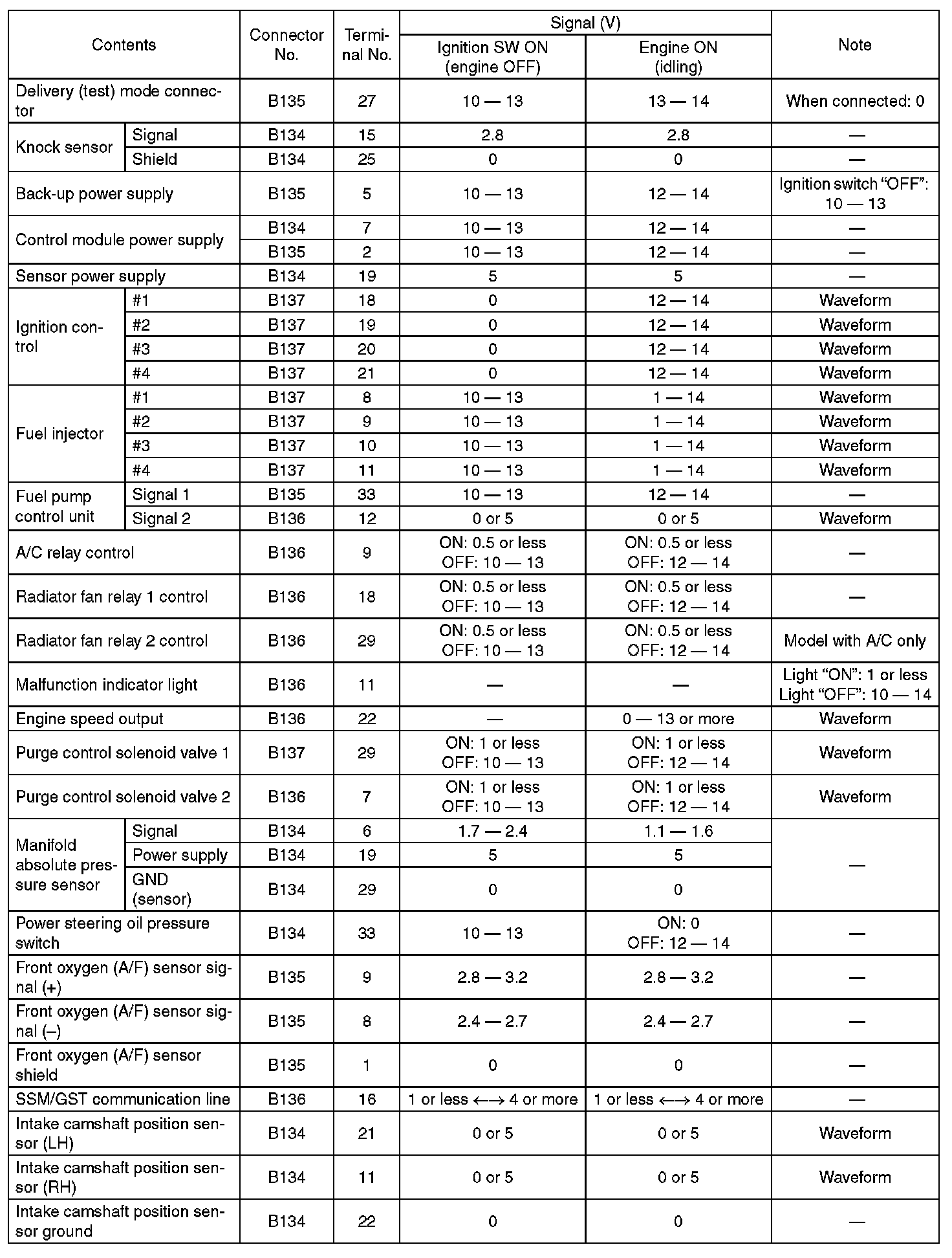 Engine Control Module (ECM) I/O Signal - Electrical Specification (Part 11):