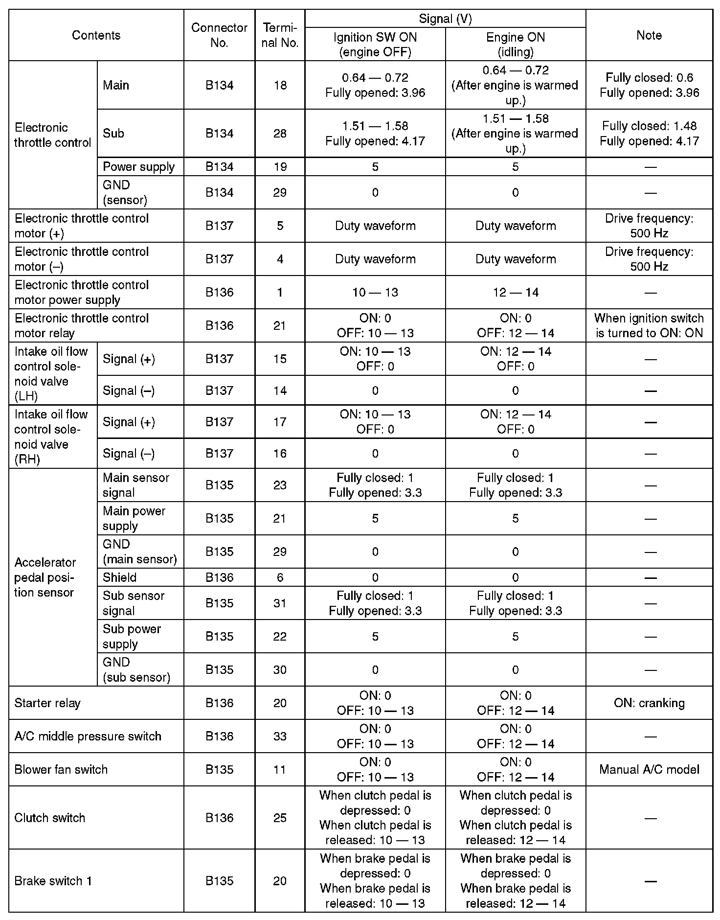 Engine Control Module (ECM) I/O Signal - Electrical Specification (Part 6):