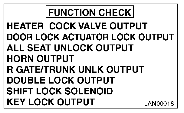 NOTE: In order to check the body integrated unit function, inspect the body integrated unit and actuator using Subaru Select Monitor without operating switches.