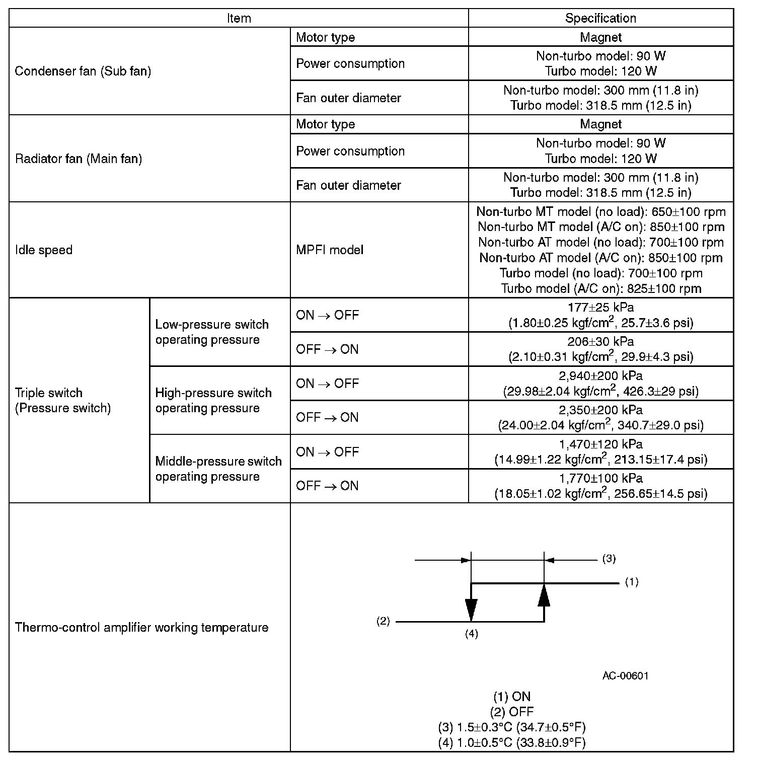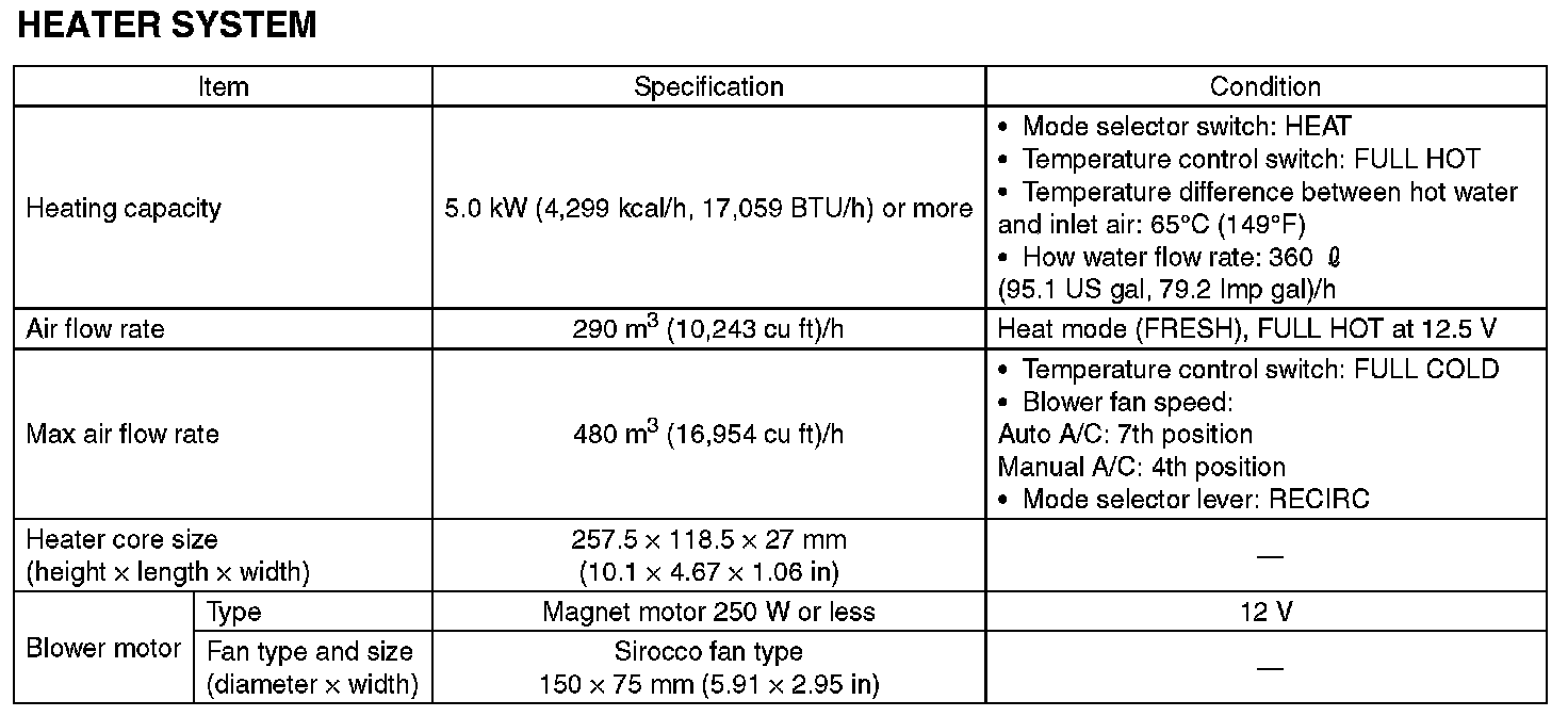 Specification - A/C System (Part 2):
