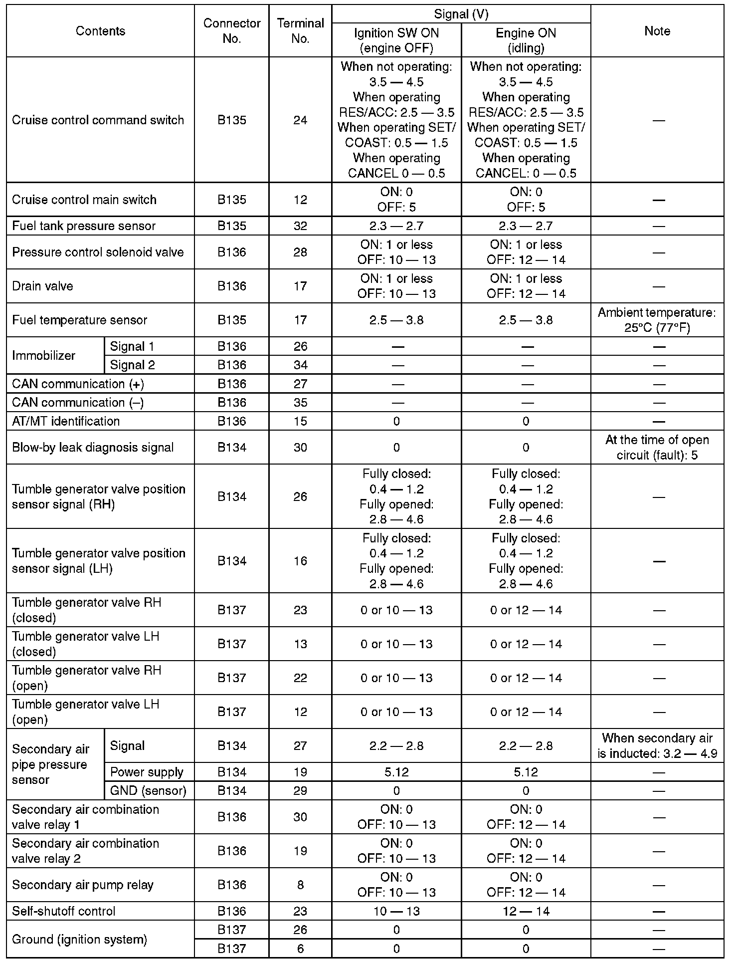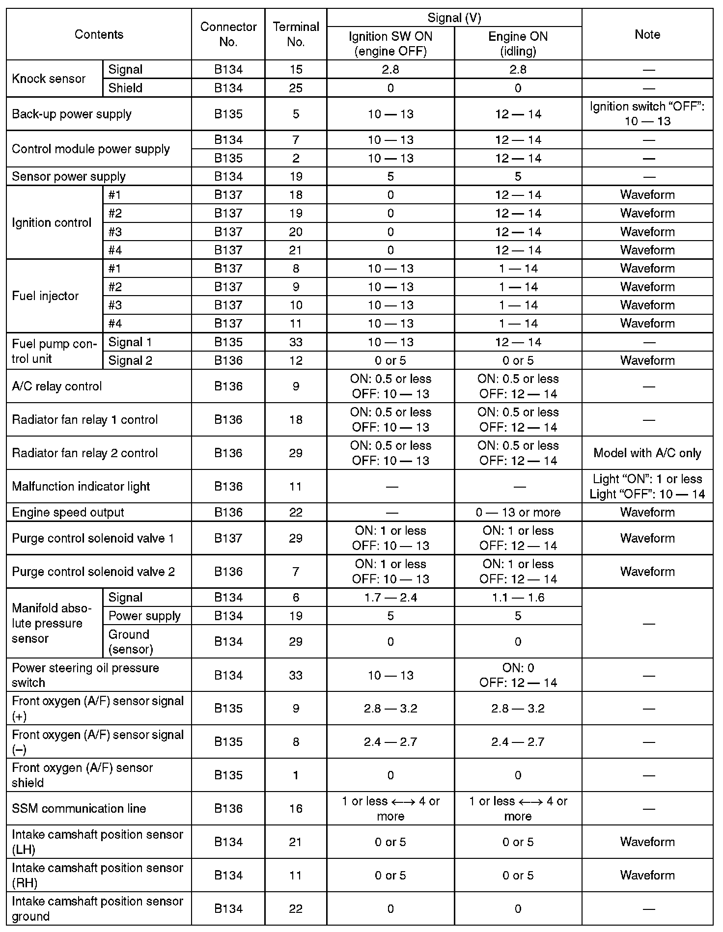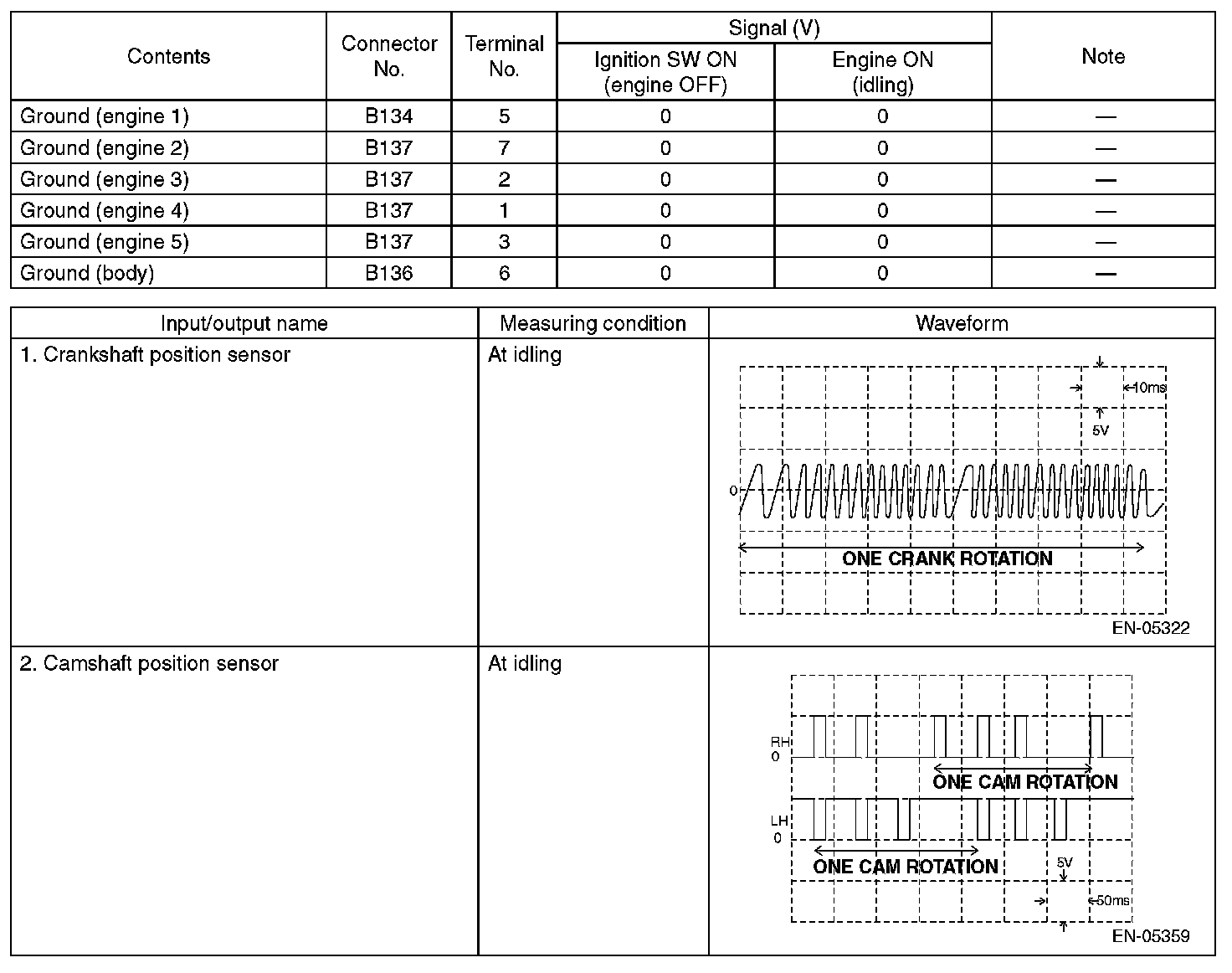 Engine Control Module (ECM) I/O Signal-Electrical Specification (Part 5):