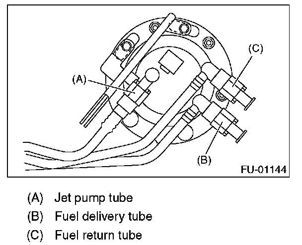 7. Disconnect the quick connector of fuel delivery tube, fuel return tube and jet pump tube.