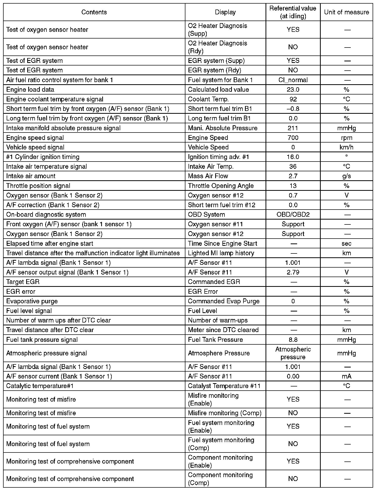 3. READ CURRENT DATA FOR ENGINE (OBD MODE)