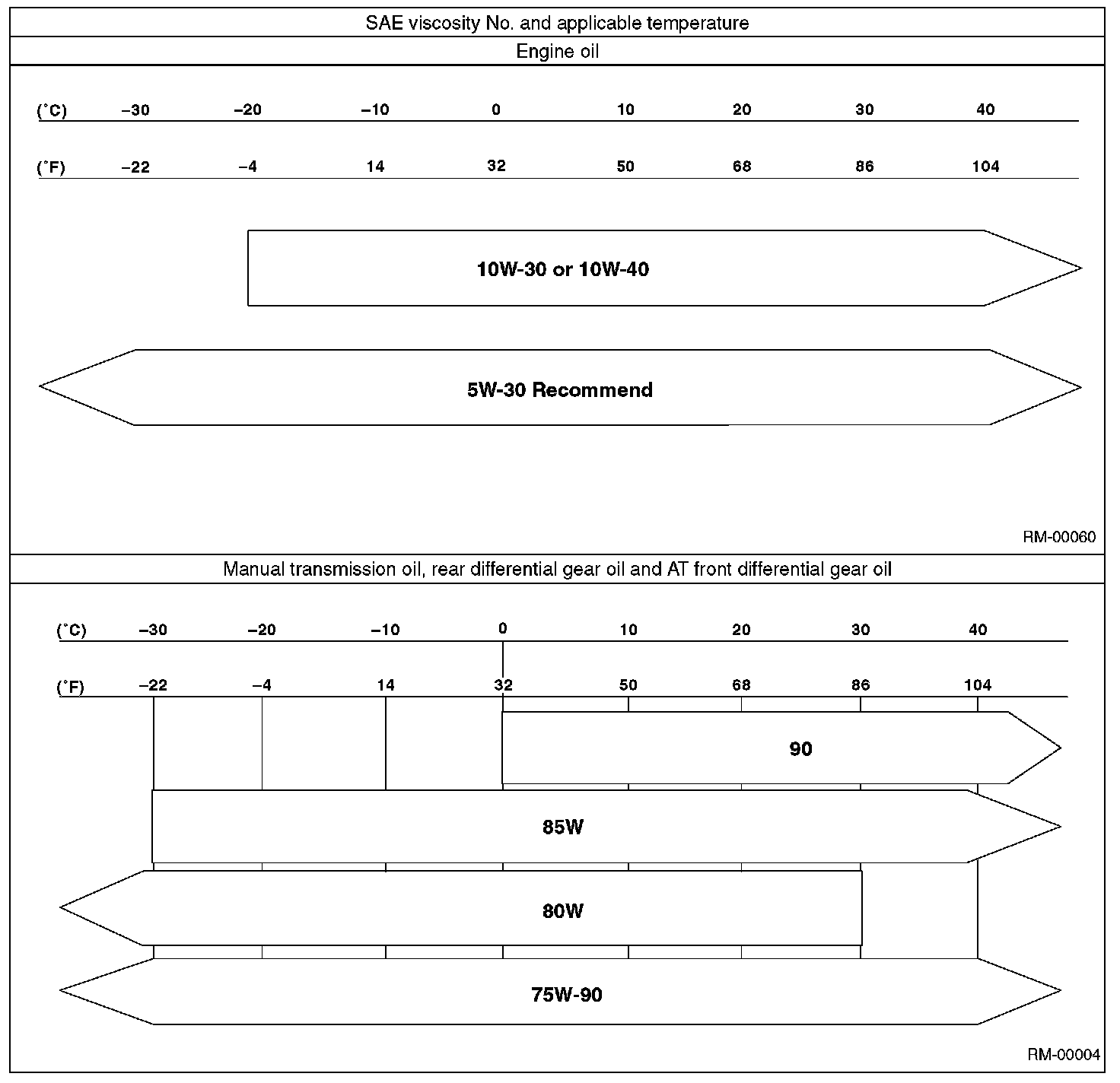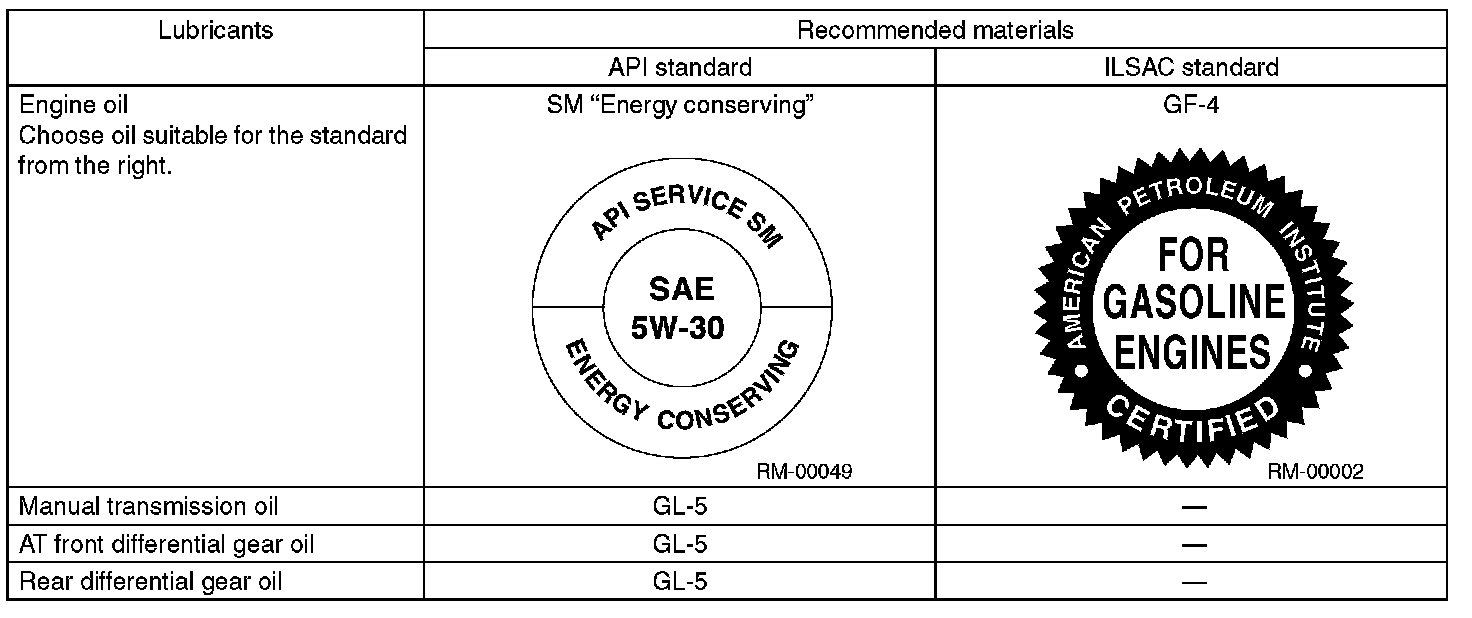 Use the lubricants shown in the table below, or equivalent. See the table below to choose the correct SAE viscosity.