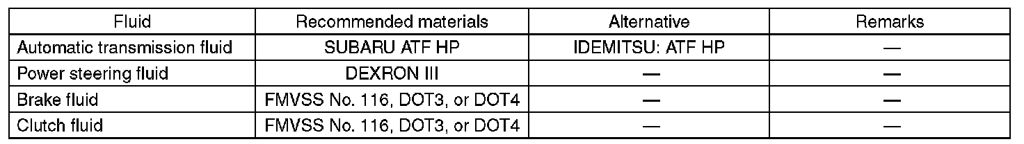 CAUTION: Always use the recommended or equivalent ATF. Using material except recommended one or substitute would cause trouble.