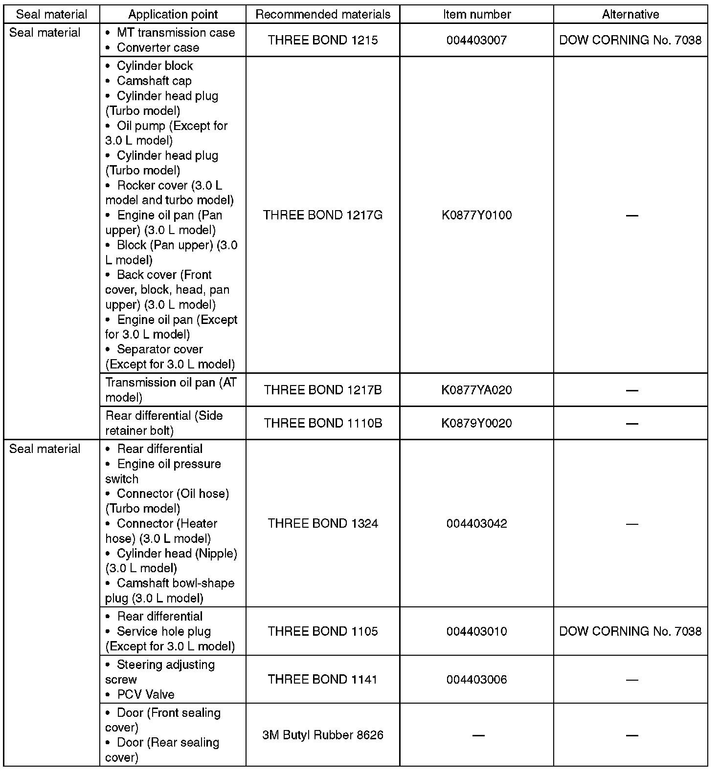 To insure the best performance, always use the specified oil, gasoline, adhesive, sealant, etc. or a substitute of equivalent quality.