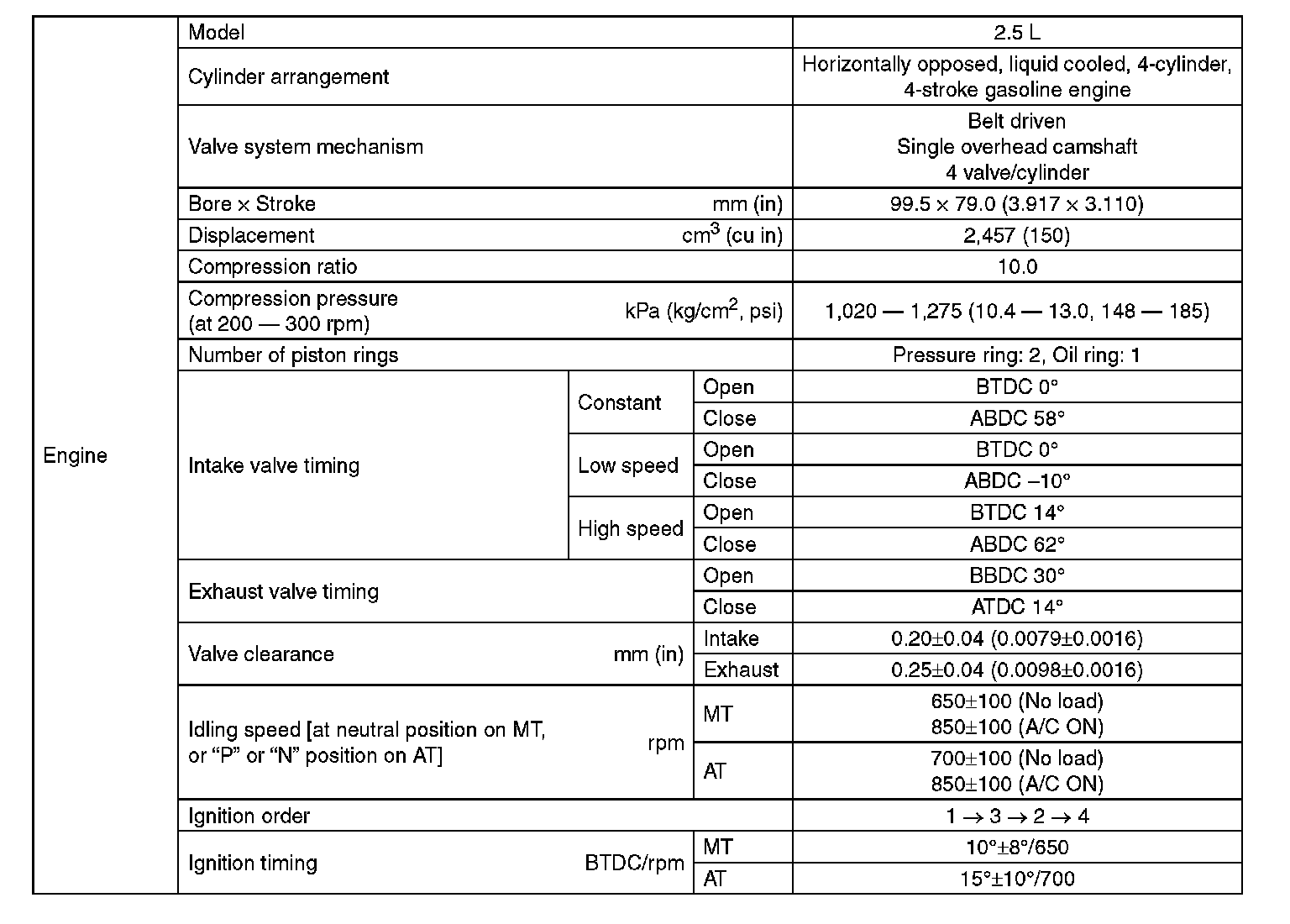 Outback F4-2.5L SOHC