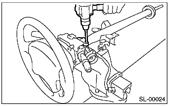 3. Secure the steering column in a vise. Remove the bolt with a drill.