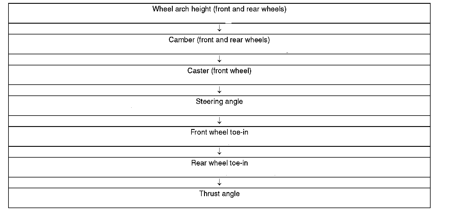 Check, adjust and measure the wheel alignment in accordance with the procedures indicated in the figure.
