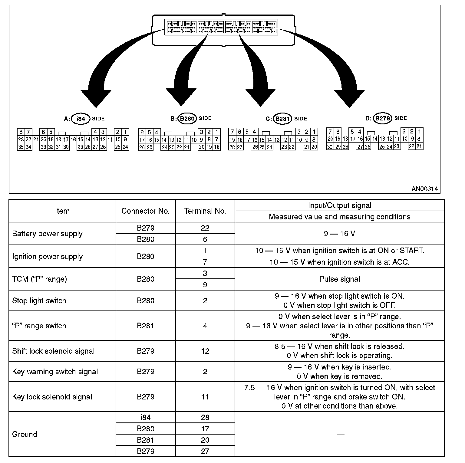Pinout Values and Diagnostic Parameters