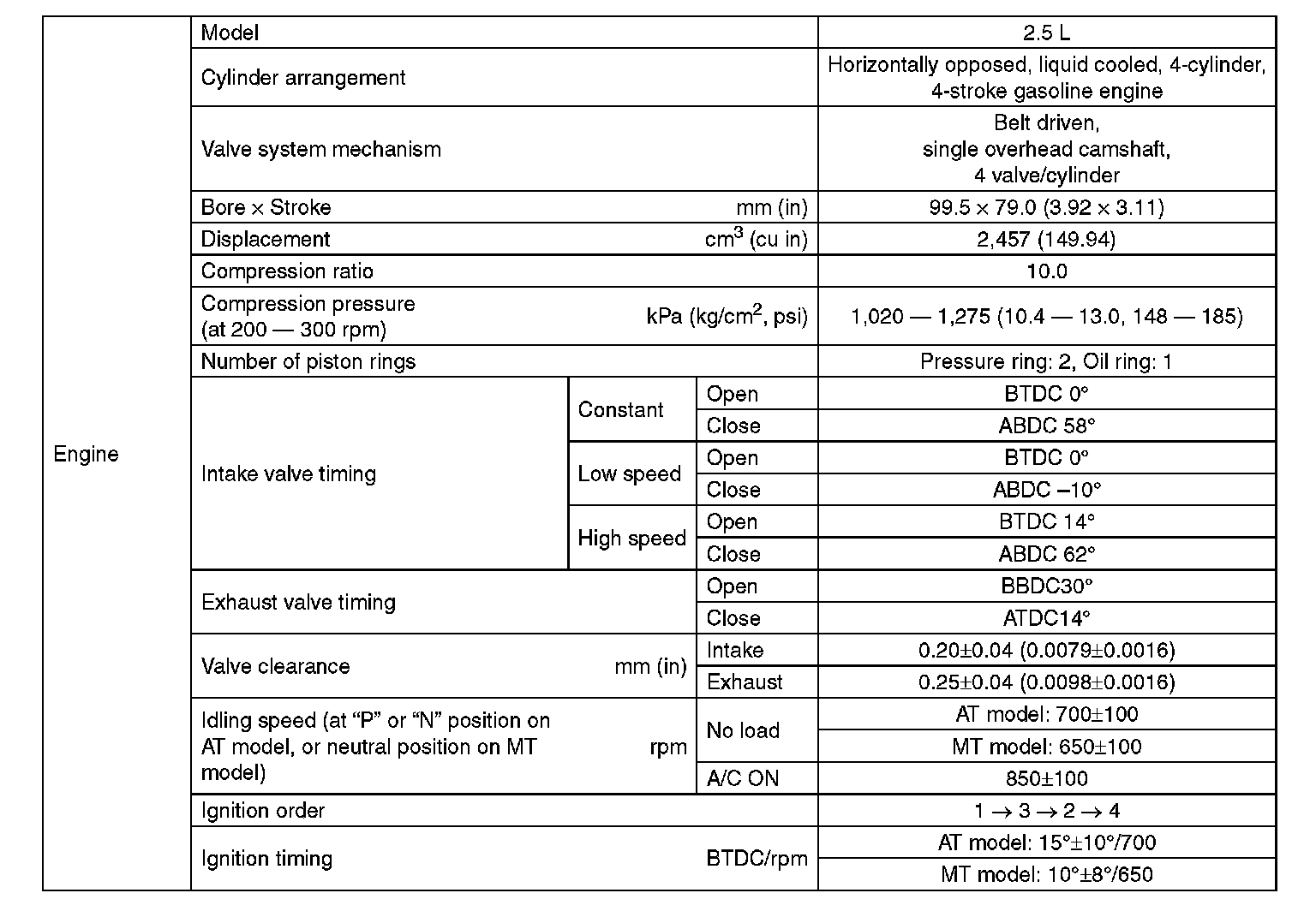 Outback Sport F4-2.5L SOHC