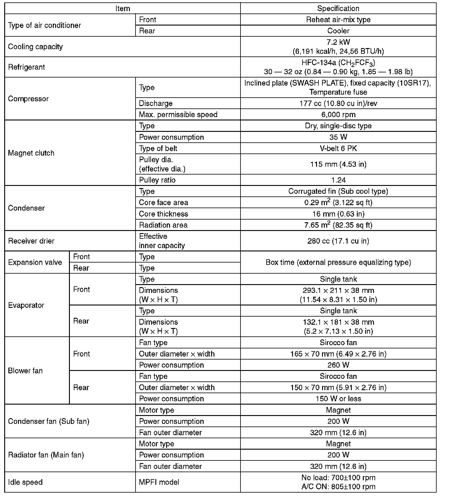 Single A/C model (front only)