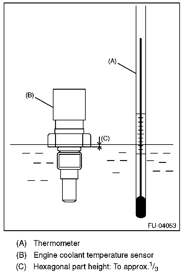 2. Immerse the engine coolant temperature sensor and a thermometer in water.