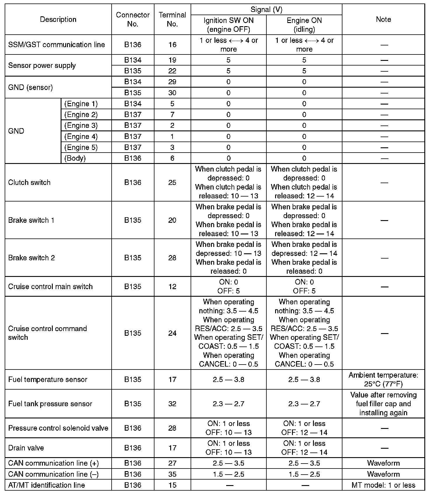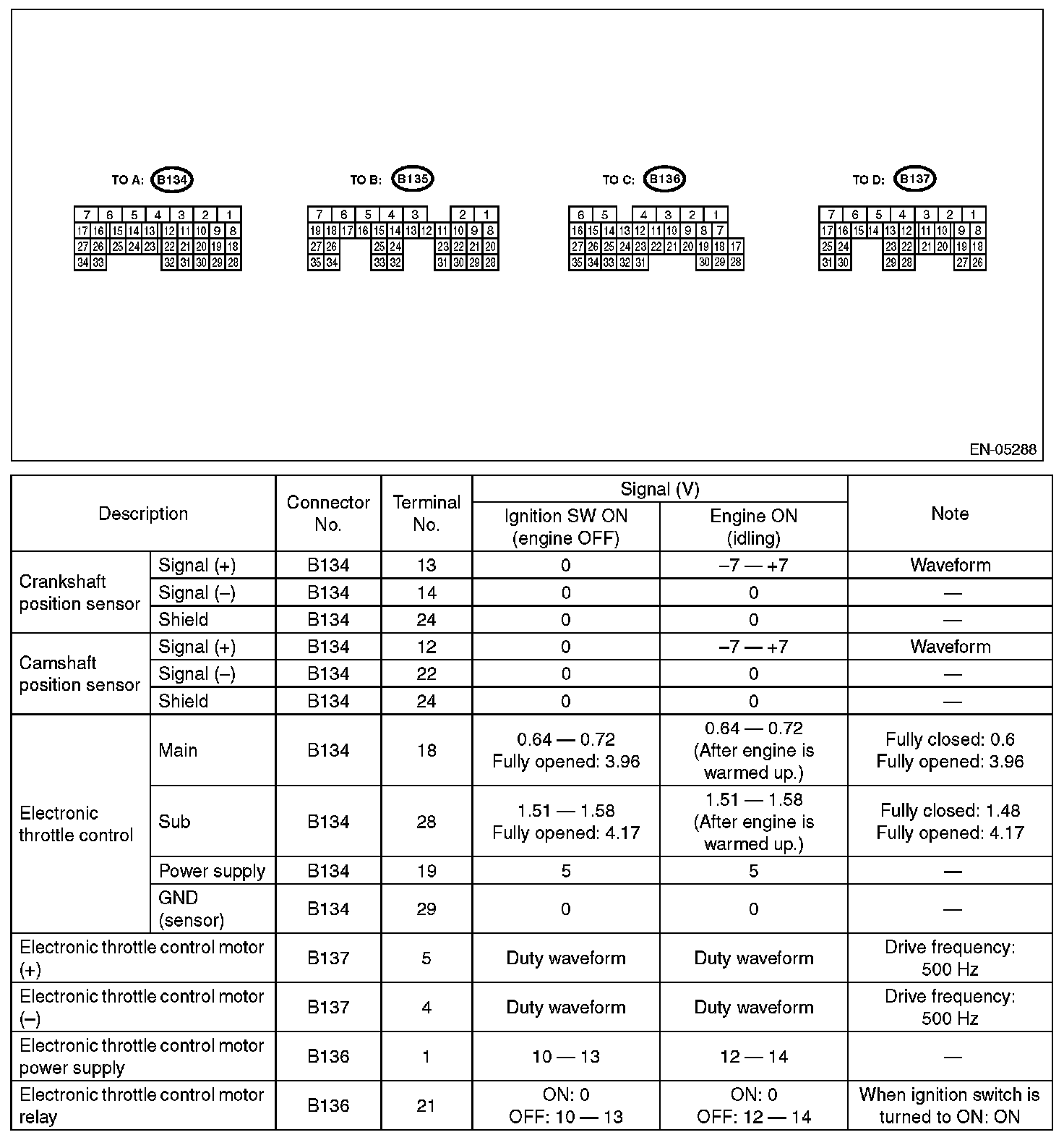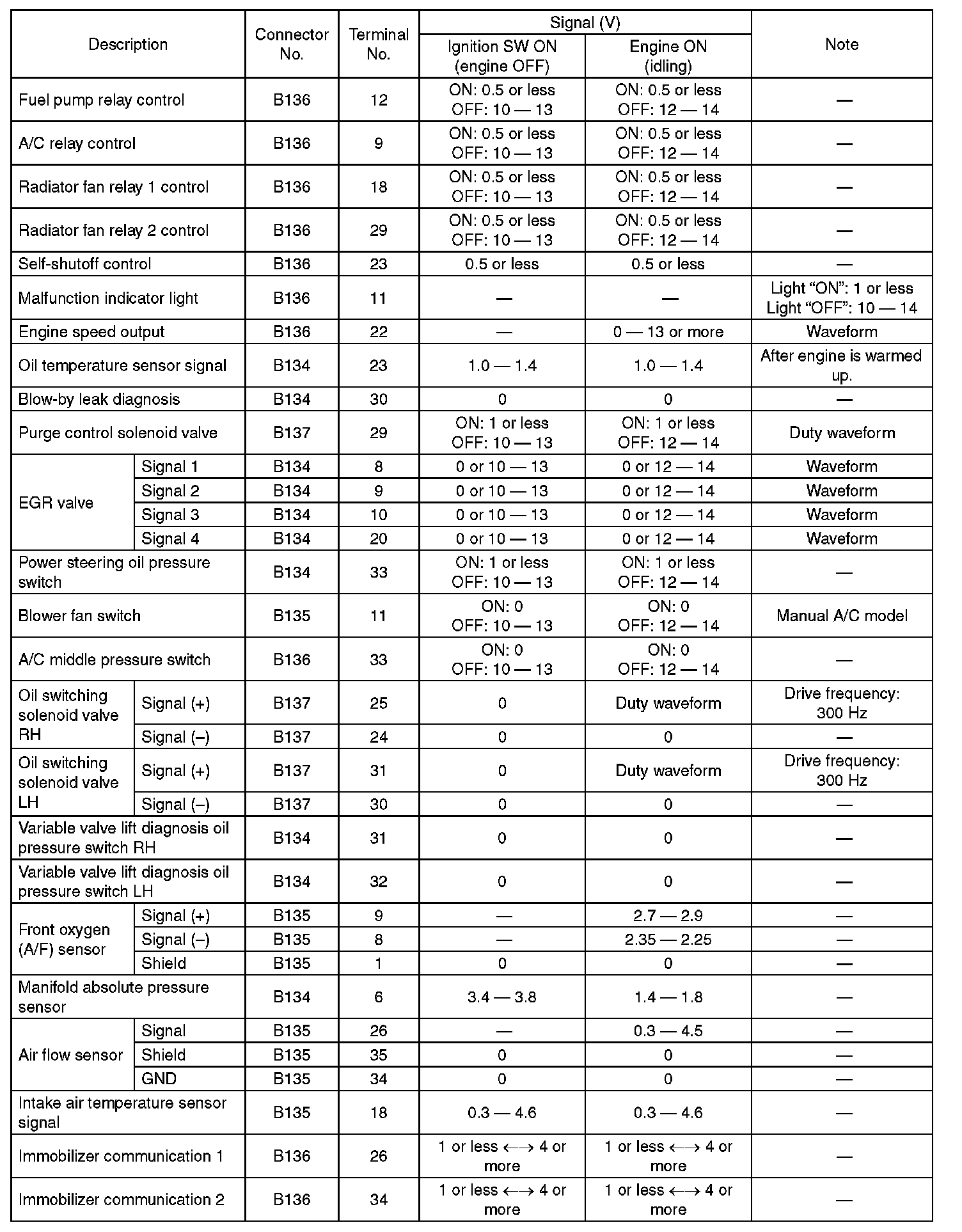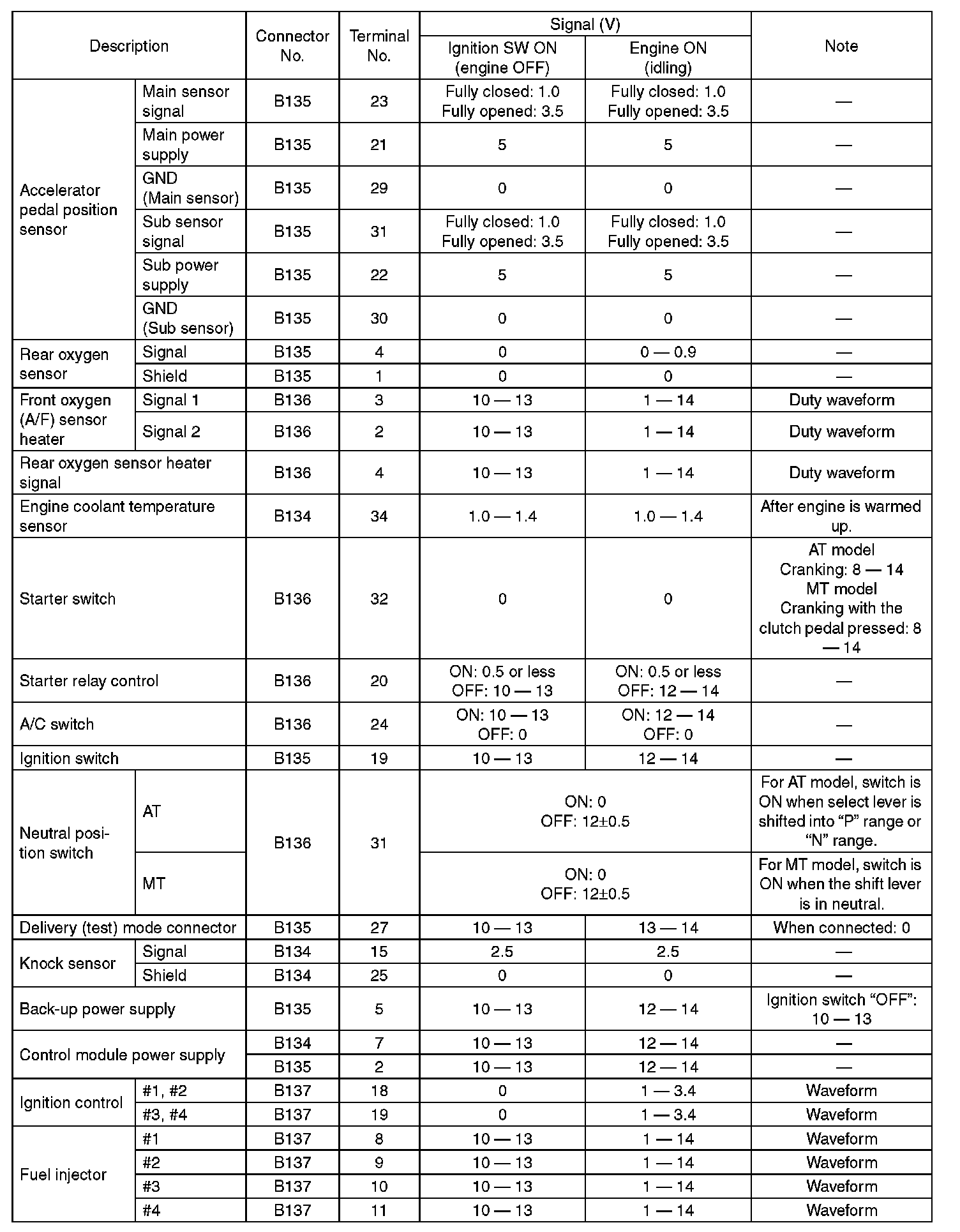 Home >> Subaru >> 2010 >> Forester F4-2.5L SOHC >> Repair and Diagnosis >> Powertrain Management >> Computers and Control Systems >> Engine Control Module >> Testing and Inspection >> Pinout Values and Diagnostic Parameters