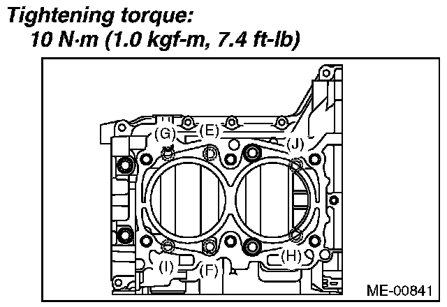 Tighten the 10 mm bolts on RH side (E - J)