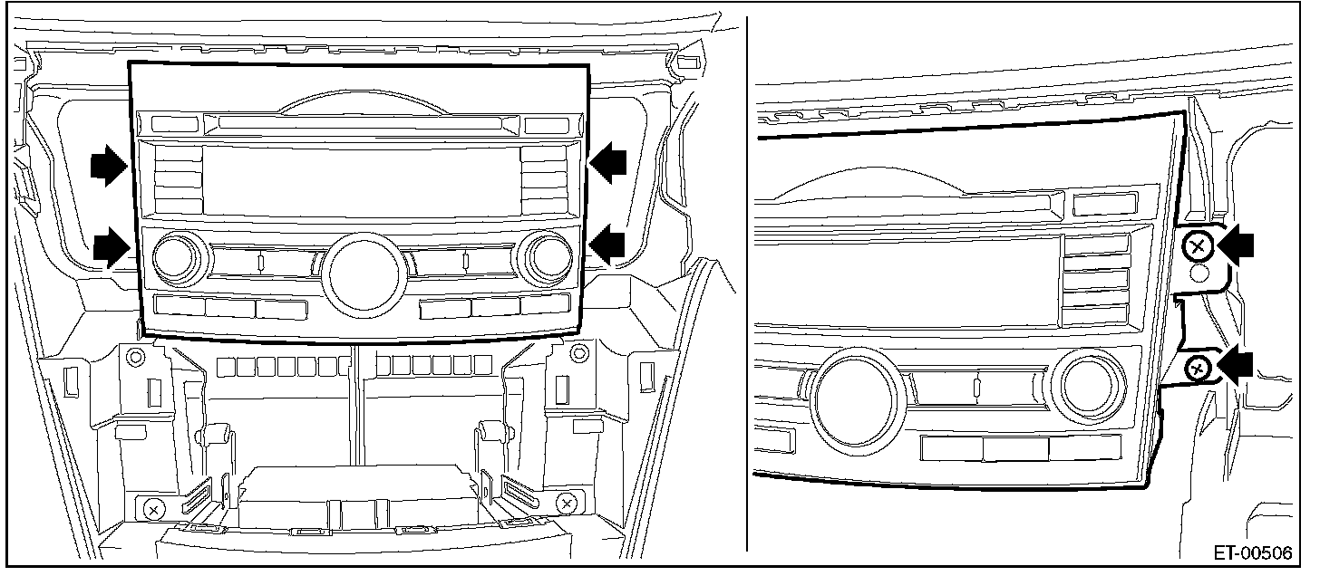 1. Remove the left and right screws, and partially pull the audio out from center console.