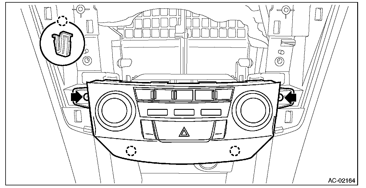 3. Insert a finger into the air vent grille and release the left and right clips at the center of the center panel. (C), (D)