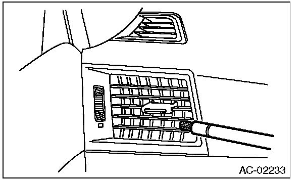 6. Turn the ignition key to ON, and run the blower at high speed for approx. 1 minute. Stop the blower and check the ventilation grille on the instrument panel. While moving the tester closer to the grille, run the blower for 1 or 2 seconds, then stop it. Check the grille at that position for at least 10 seconds.