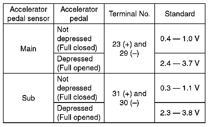 1. CHECK ACCELERATOR PEDAL SENSOR AREA (METHOD WITH CIRCUIT TESTER)