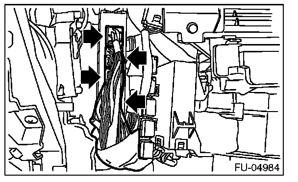 2. Remove the glove box lid assembly, glove box lower cover, instrument panel side cover LH and glove box back panel.