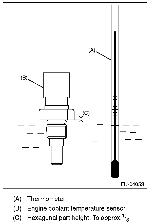 2. Immerse the engine coolant temperature sensor and a thermometer in water.