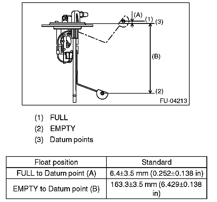Measure the fuel sub level sensor float position.