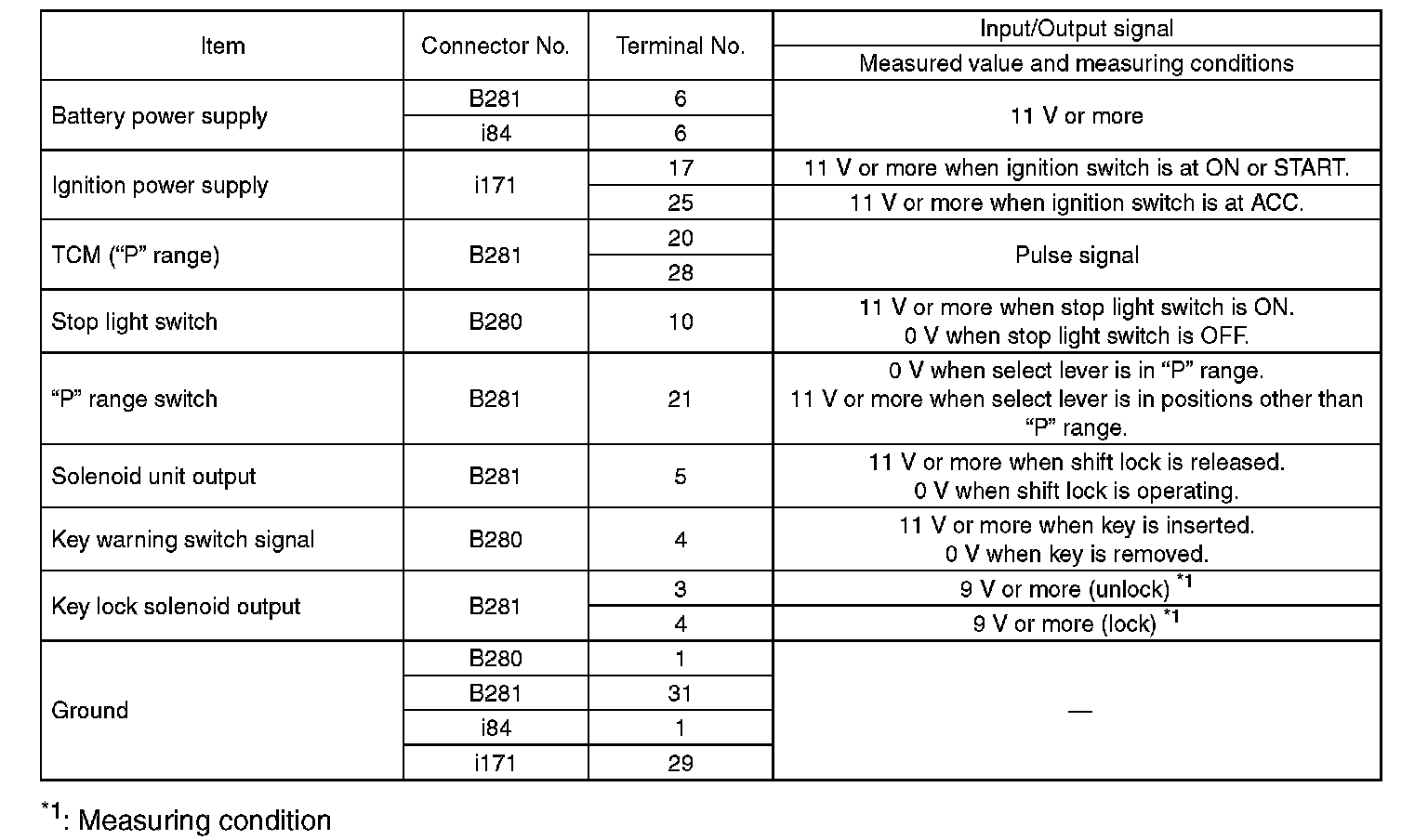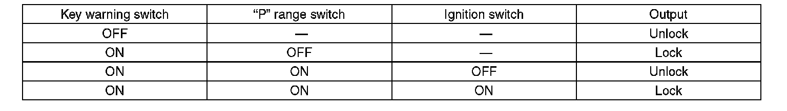 Output signal for key interlock solenoid (unlock):
