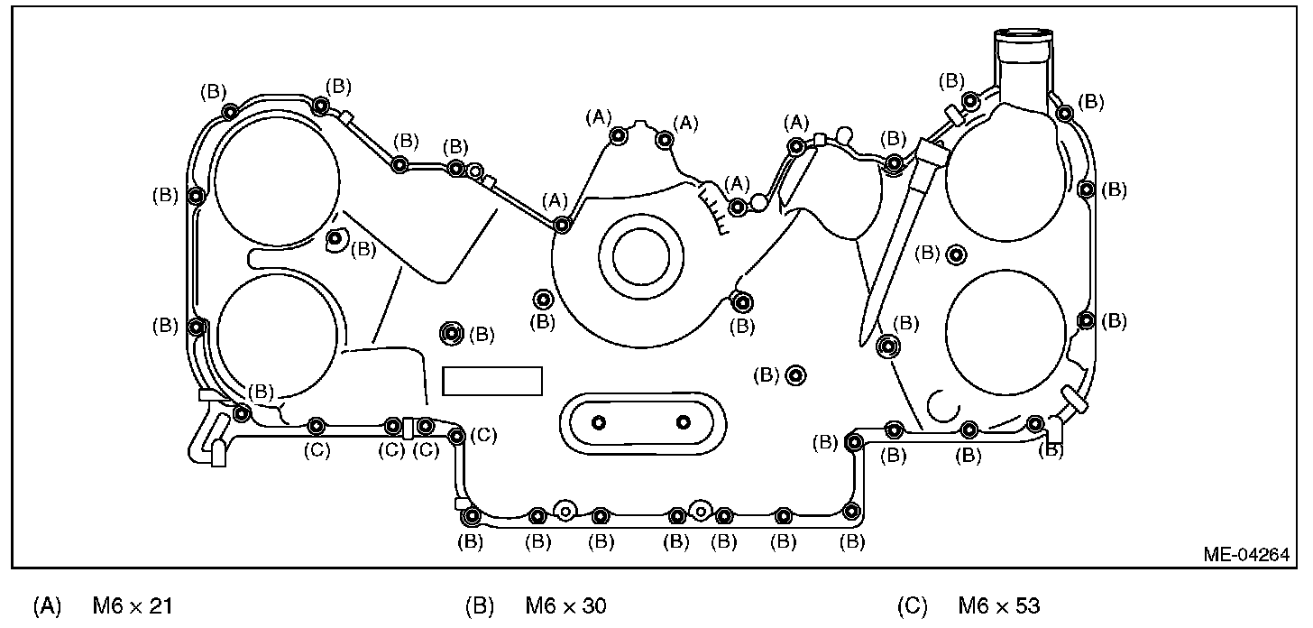 CAUTION: Do not install the chain cover installation bolts in wrong place.