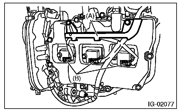 5. Disconnect the connector (B) from ignition coil.