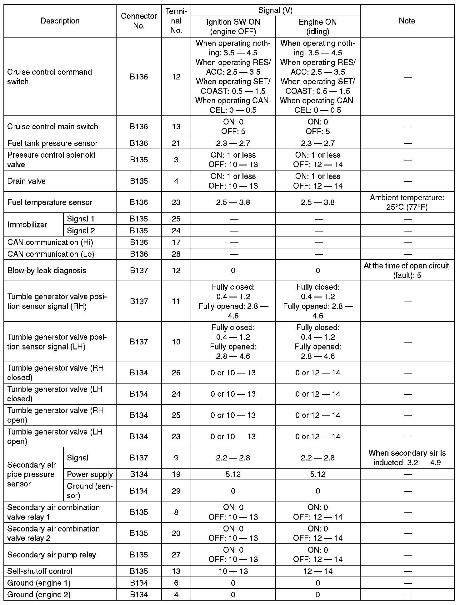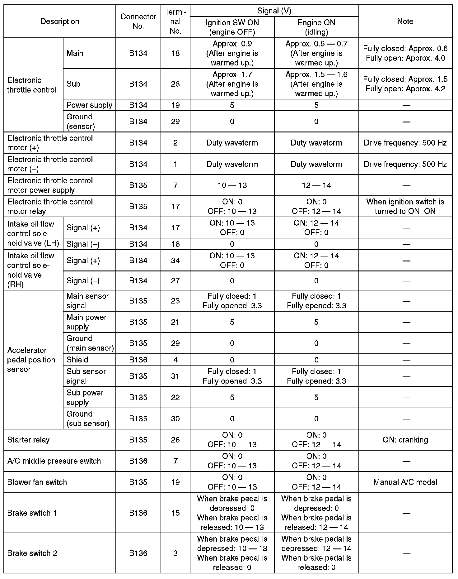 Engine Control Module (ECM) I/O SignalELECTRICAL SPECIFICATION
