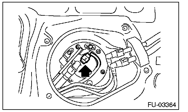 - Align protrusion (B) of the fuel sub level sensor to the cutout in the fuel sub level sensor upper plate.