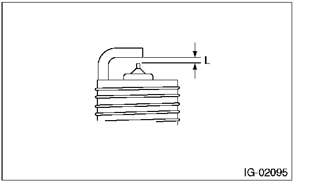 3. Using a nylon brush, etc., clean and remove the carbon or oxide deposits from the spark plug. If deposits are too stubborn, replace the spark plugs. After cleaning the spark plugs, check the spark plug gap "L" using a gap gauge. If it is not within the standard, replace the spark plug.