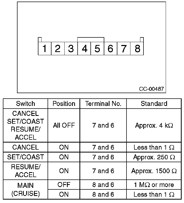 Home >> Subaru >> 2011 >> Forester F4-2.5L DOHC >> Repair and Diagnosis >> Cruise Control >> Cruise Control Switch >> Testing and Inspection
