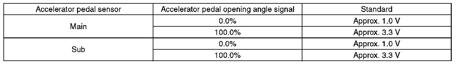 2. Read the accelerator pedal opening angle signal and voltage of accelerator pedal sensor using Subaru Select Monitor. Subaru Select Monitor