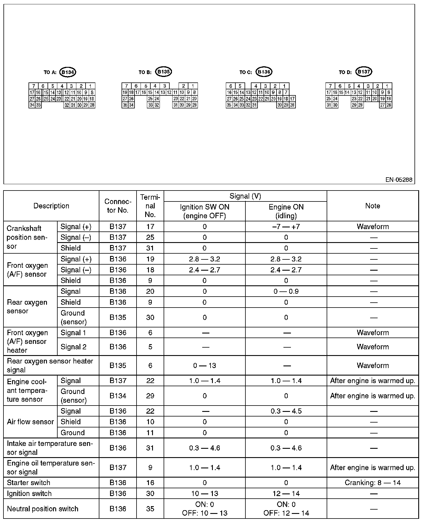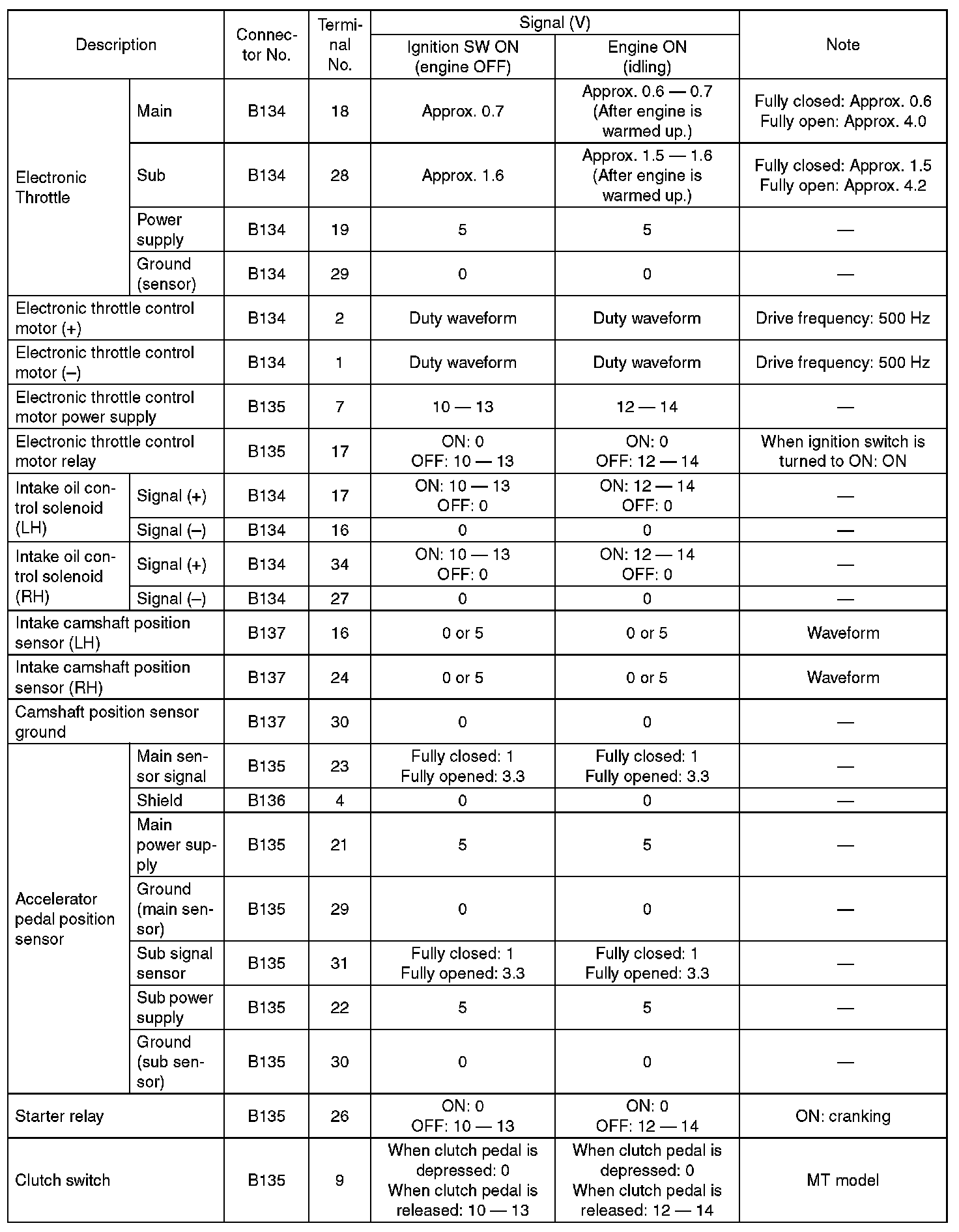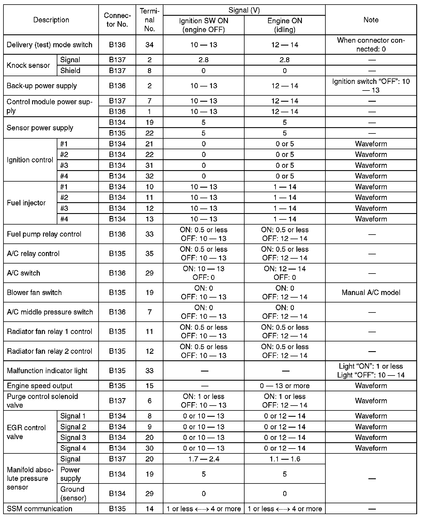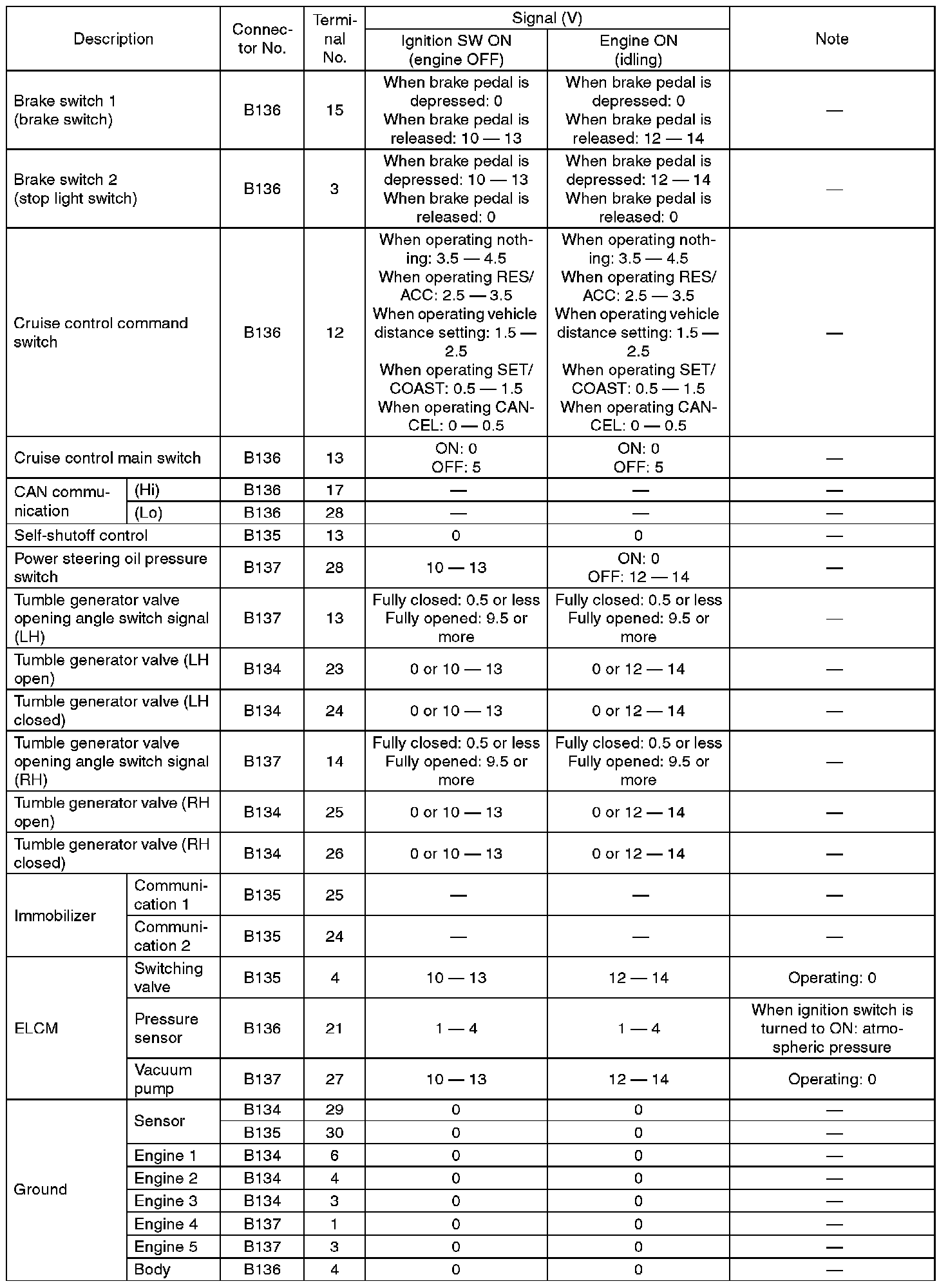 Engine Control Module (ECM) I/O SignalELECTRICAL SPECIFICATION