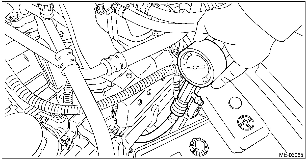 13) Crank the engine by starter motor and read the value when the needle of the compression gauge becomes stable.