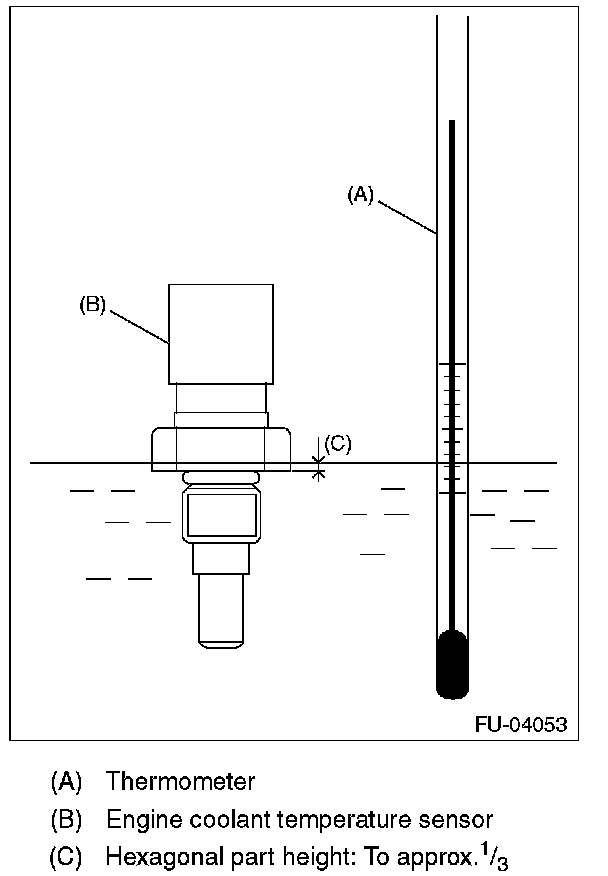 2. Immerse the engine coolant temperature sensor and a thermometer in water.