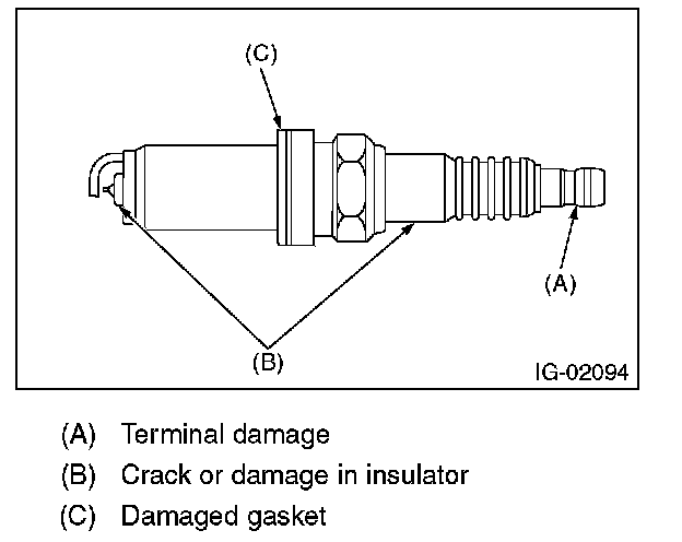 2. Check the spark plug electrode and condition of the insulator. If abnormal, check and repair the cause and replace the spark plug.